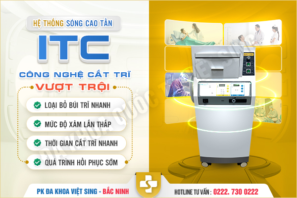 Có thể bật mí cho bạn một phương pháp cắt trĩ công nghệ cao được ca ngợi là bước cải tiến mới trong việc loại bỏ búi trĩ chảy máu hiệu quả cao – Đó là Hệ thống sóng cao tần ITC đang được áp dụng tại phòng khám Đa khoa Quốc tế Việt Sing – Bắc Ninh.