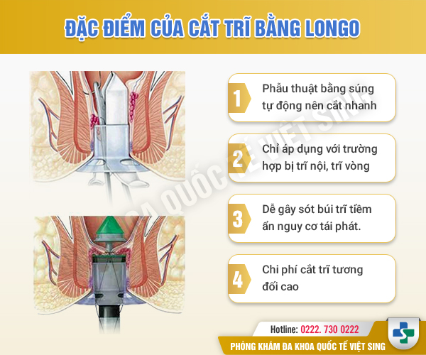 - Hiệu quả điều trị cao: Loại bỏ tận chân búi trĩ, ngăn ngừa tối đa khả năng tái phát cũng như tránh biến chứng sau thủ thuật